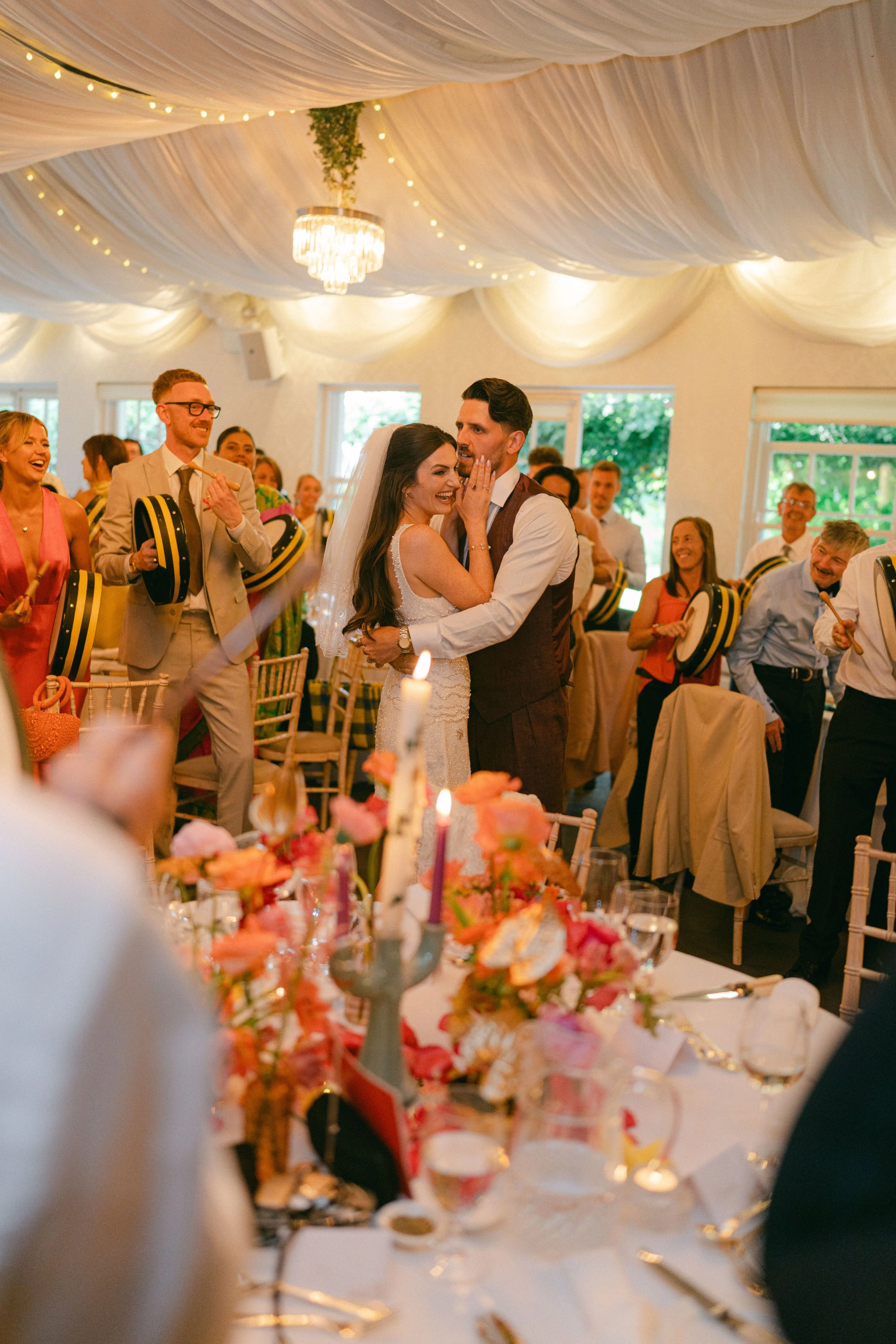 You don’t have to be Irish to appreciate the profound emotional pull of music at a wedding. The bodhrán, with its ability to evoke feelings of warmth and togetherness, adds a unique layer to your wedding playlist. The beats speak directly to the heart, uniting people across backgrounds and cultures through the power of rhythm. The music will create a lively yet heartfelt atmosphere that resonates with the joy of the occasion. We can also have our Irish trad band play live at your drinks reception to get the mood started!